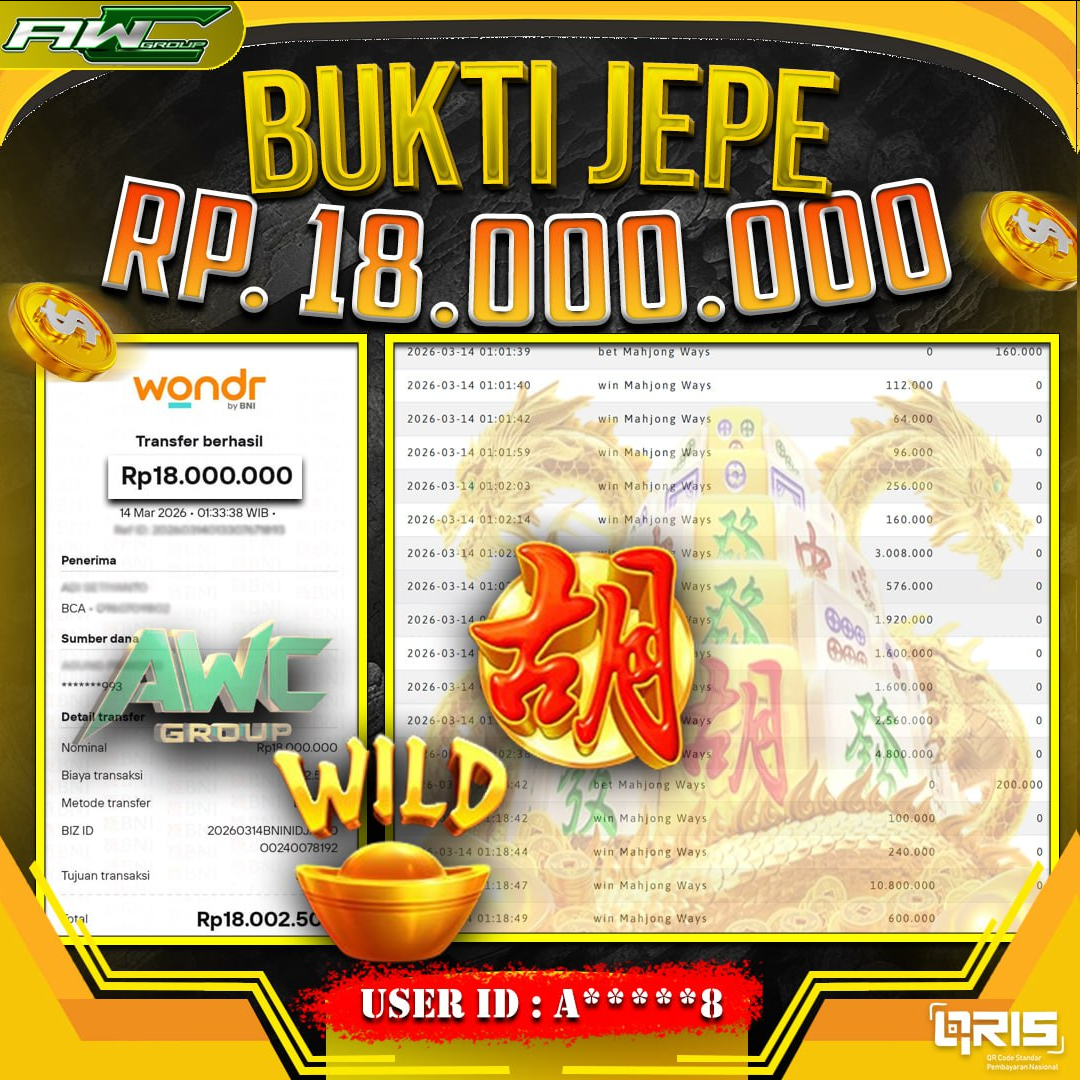 ID : A*****8 JACKPOT PAUS DI SLOT PG SOFT NAMA GAME : MAHJONG WAYS TOTAL WITHDRAW : 18.000.000